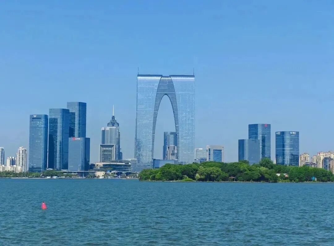金鸡湖景区,全国唯一商务旅游特质的国家AAAAA级旅游景区,“国家商务旅游示范区”的集中展示区。景区总面积11.5平方公里(其中水域面积7.4平方公里),以金鸡湖为中心,投资89.53亿元,精心打造了五大功能区:文化会展区、时尚购物区、休闲美食区、城市观光区、中央水景区。东方之门,苏州新地标,曾以“秋裤”的别称爆红于网络。它是金鸡湖西岸的一座摩天大楼,整幢大楼是一个双子塔的建筑,顶部双子塔合二为一,构成一扇门的形状。它的高度达到了301.8米,比肩苏州第一高峰穹窿山主峰,门洞高246米,跨度68米,约6个巴黎凯旋门的大小,是世界上最大的门形建筑,被誉为“世界第一门”。