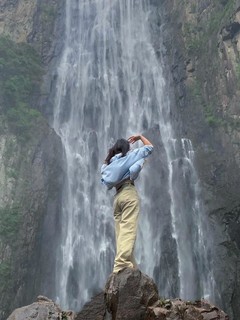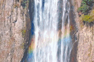 汇集"天下第六福地"南田诸水而成飞流,自海拔600余米高山绝壁倾泻而下,突奔于深壑巨涧之中,形成阶梯型"三折"瀑布群,总落差353米,单体落差207米,为华夏之最。